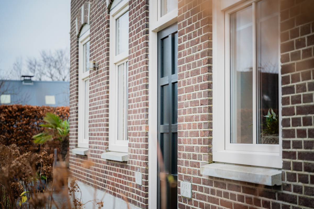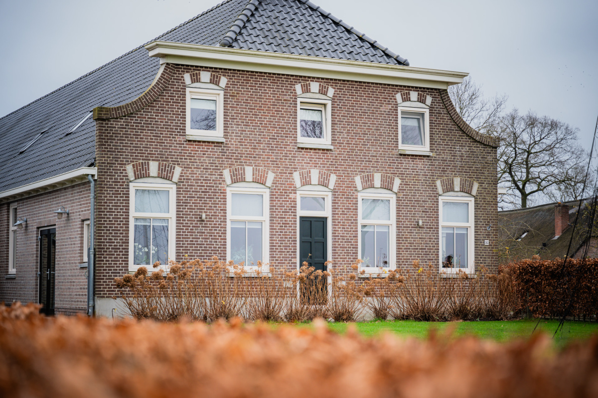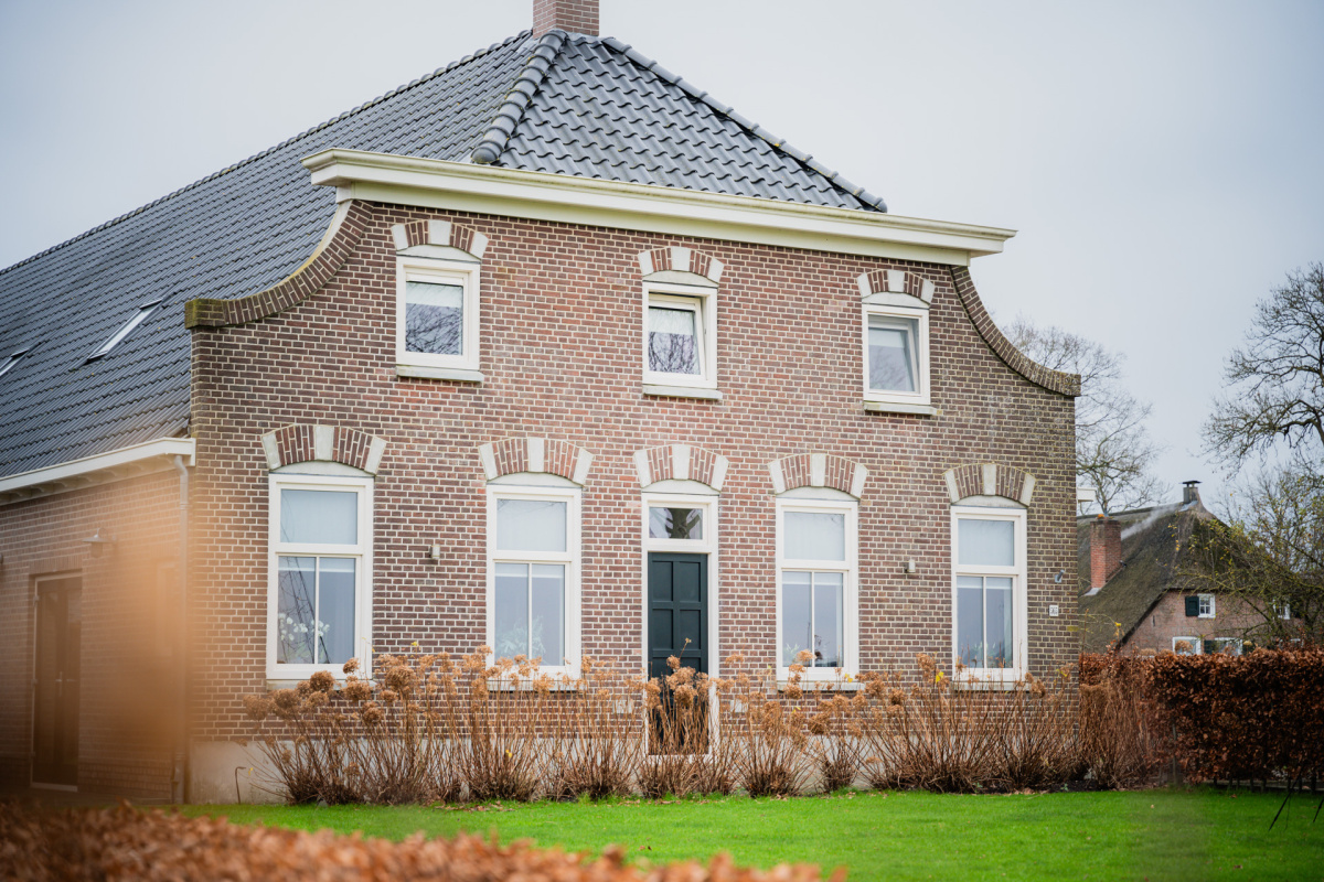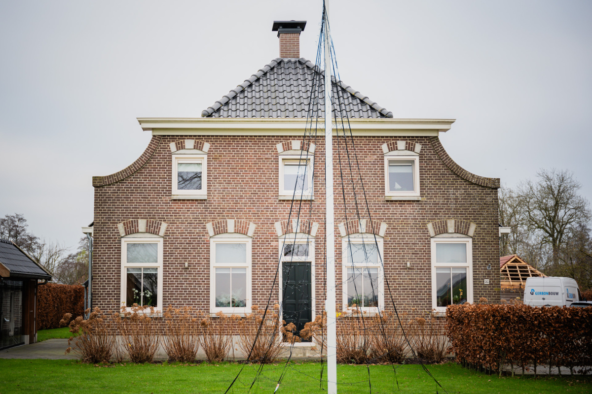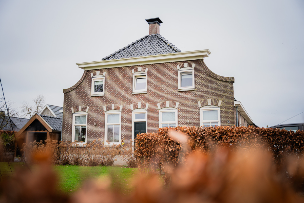 Bij deze monumentale boerderij in Rouveen moest de voorgevel in oorspronkelijke staat behouden blijven. Terwijl daarachter een compleet nieuwe woning mocht verrijzen. Waar een architect het volledig plaatje uittekende, werd van ons de totale uitvoering gevraagd. Een omvangrijke opdracht, waarbij de renovatie van de voorgevel de grootste uitdaging vormde. Die gingen we met verschoning, versteviging en zowel nieuw snijvoegwerk als stucwerk met succes aan.